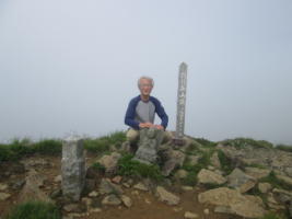 山頂はガスで包まれていて視界なし。
