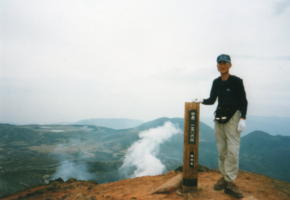 12:40頃、山麓着。12:45発の仙酔峡ロープウェイには間に合わず、13:15発に乗る。 ロープウェイ:観光客は多かったが、登山客は我々だけ。 火口展望台〜中岳〜〜高岳〜高岳火口壁〜仙酔尾根(長い急坂を下る)〜仙酔峠〜仙酔峡(ミヤマキリシマが満開) (*学生時代に、親しかった仲間で卒業記念の九州旅行で冬に登り、寒かった記憶がある。) |
