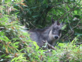 阿波々神社を写そうとカメラを持参したら登山道脇の竹やぶにニホンカモシカが現れました。山頂下の林道、登山道やその付近では度々出現します。