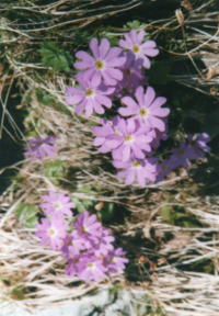 田代バス停近くの駐車場4:45〜アカヤシオやイワカガミの花〜×○コザクラ?が満開の岩〜7:55小無間山8:07〜唐松谷ノ頭〜中無間山〜9:33山頂9:46〜11:01小無間山11:05〜11:22×○コザクラを眺めて昼食11:37〜13:58諏訪神社の湧水(休憩)〜14:02田代の駐車場 |