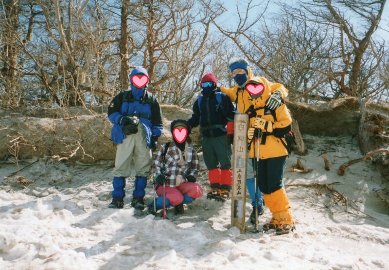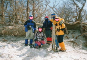 集合場所3:05⇒7:00RT20のコンビニ(朝食)⇒8:20路面凍結のためUターン⇒9:27登山口(矢立石)〜10:58休憩(キンツバなどを食べる)〜12:04休憩(お汁粉をつくる)〜12:25山頂12:40〜白ザレ急斜面〜13:53凍りついた錦滝〜滝の近くの風の当たらない陽だまりで昼食(カップ麺や甘酒など)〜登山口