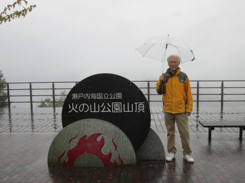 雨の中、山頂の展望台や砲台跡を巡る。霧は時々晴れて、関門大橋などの展望が良かった。