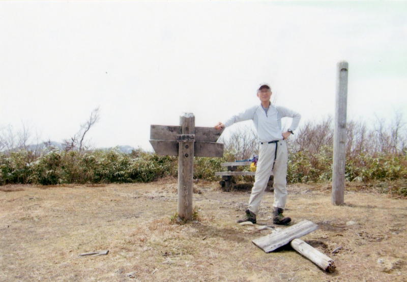 途中、タラの芽を沢山採る。山頂直下には残雪が多い。