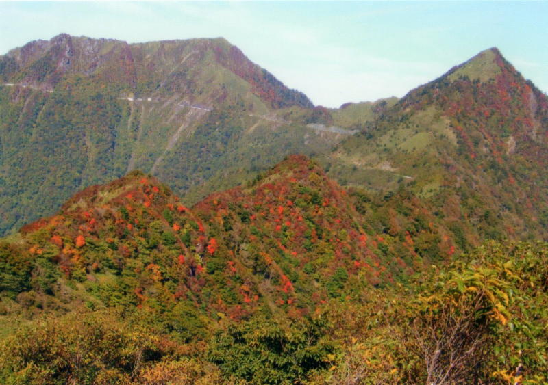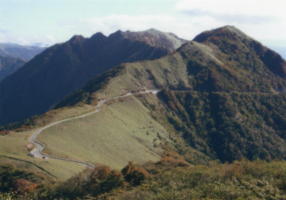 四国山地西部の石鎚山地に属する。愛媛県西条市と高知県いの町との境県尾根上に位置します。 RT194から笹ガ峰〜伊予富士〜瓶ガ森と続く尾根に沿って南側を走る瓶ガ森林道(景色が素晴らしい)で伊予富士登山口(駐車) 林道駐車場〜山頂〜東黒森〜白念子ノ頭 |