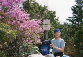 途中、今年初めて蛇を見かける。山頂にかけて深山ツツジが群生。