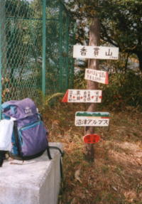 沼津アルプス縦走。自分のザックを登頂証拠に写す。
