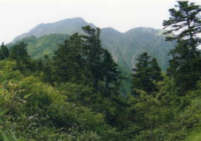 左:北峰 右:南峰 西北尾根を登る。登山口でこの尾根を拓いた○○さんのグループに出会い、休憩時におしゃべり。 下山後、入浴:神通峡岩稲温泉「楽今日館」 往復とも一般道を利用。帰路、疲れて数回仮眠をとる。 |