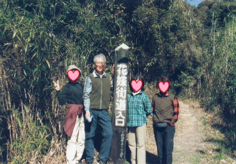 花嫁街道入口〜経文石〜自害水〜駒返し〜烏場山〜旧烏場展望台〜見晴台〜金比羅山と登り、抱湖園(早咲きの満開の桜に多くのメジロが集まっていた)と房総フラワーライン(お花畑)を観光した。