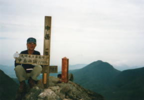 初めての九州の山(観光で登った阿蘇山や雲仙岳などは除く)。素晴らしい眺望。近くに九重の山々、遠く阿蘇山・祖母山・由布岳などを望む。