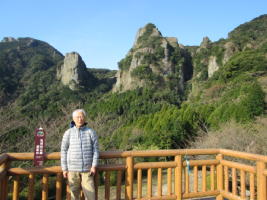 乳待坊展望台からの黒髪山の夫婦岩を望む。