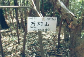 ガイドブックで山頂となっている展望の良い広場の奥にある藪にピークが有りそうだった。行ってみると、幾つかの山頂標示プレートあり。