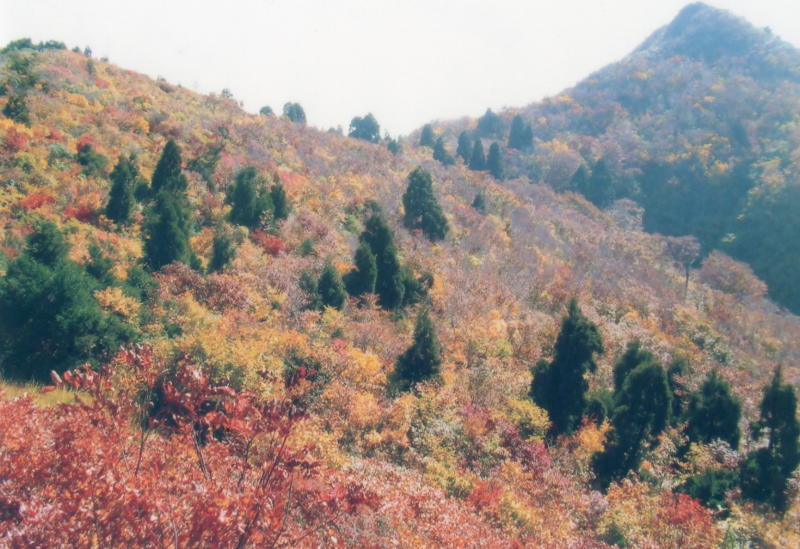 雨乞峰などが見事な紅葉だった。性能が悪い安カメラで色がでない、残念。