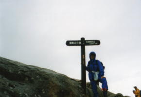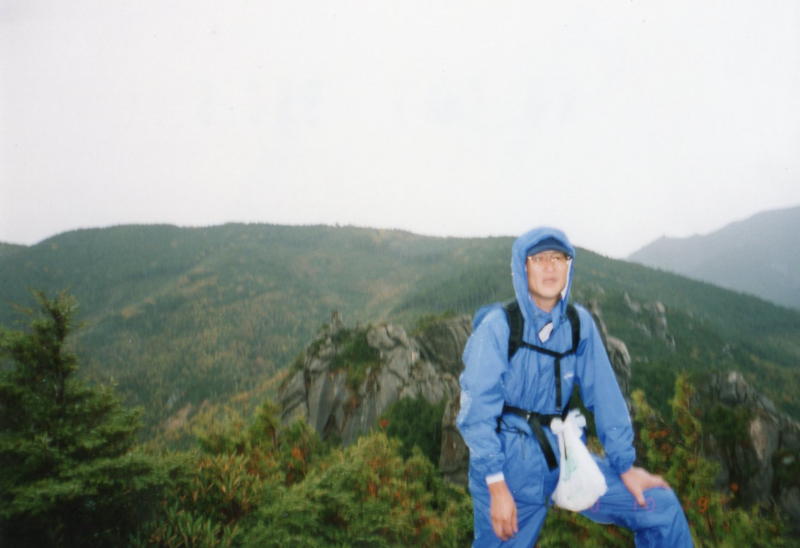 岩の縁まで行くには度胸が要る。 怖いので屈んで両手をつきながら縁の近くへ進む。 |