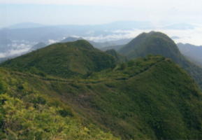 これから下山する北方面の展望(分県登山」ガイドに「展望の良い尾根道」と記載されていたので下岳方面へ向かい、途中まで行って引き返す)。
