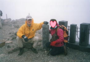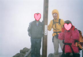 山頂だけ濃霧。 国内第14位の高峰(3067m)です。 田ノ原〜大江権現〜金剛童子〜8合目、9合目石室〜山頂 *前回(2000年7月30日)は登山口より横殴りの風雨+濃霧。ただ山頂へ行ってきただけ、頂上部では踏ん張らないと吹き飛ばされそうだった=まるで台風のよう。 |