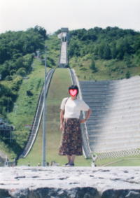 妻と北海道旅行。札幌市中央区宮の森、大倉山の東斜面にあるジャンプ台に登りました(ジャンプ台上まで)。
