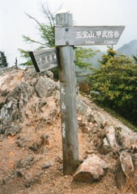 標柱には埼玉県と記されている。手前へ:十文字峠、右手へ:三宝山・甲武信岳へ