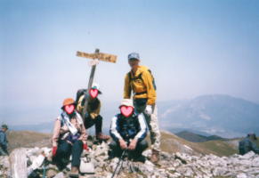 登山口〜汗フキ峠〜お虎ヶ池〜経塚山〜山頂(三角点)〜最高点〜福寿草の大群落〜南霊岳〜笹峠〜違う登山口に下山し林道歩きで汗フキ峠〜出発地点へ戻る。