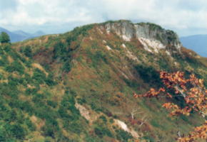 山頂部が飛騨岩、越中岩、加賀岩の3つの岩峰から成る威風堂々と した山容です。
