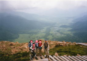 尾瀬ガ原へ少し下るとガスが晴れてきたので、再び山頂へ戻る。