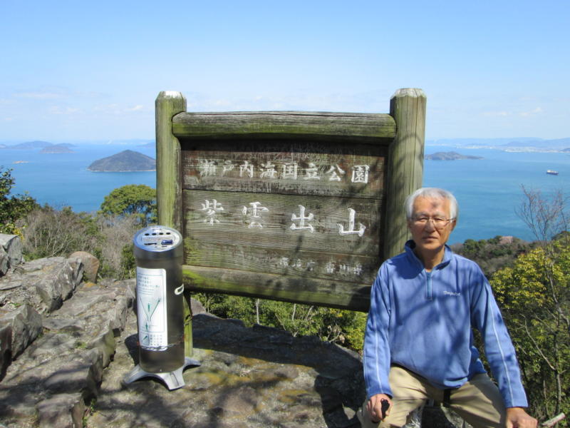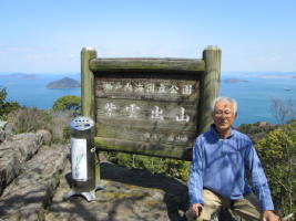 三豊市の荘内半島中央部に位置する。左の写真:山頂駐車場脇のピーク。