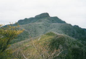 熊本の健康ランドから登山口へ向かう。 こんな山の中から登る登山者がいるのかな・・・と思いながら、登山口に着くと多くの車で駐車場は満杯。ビックリ! 尾平登山口から登ったと思うが、コースは記憶にない。 頂上部は岩峰。九重山や由布岳が見えた。 |