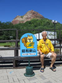 有珠山に登ったあと、昭和新山をバックに記念撮影。