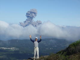 大箆柄岳で休憩していると、「ドン!」と桜島が噴火。 |