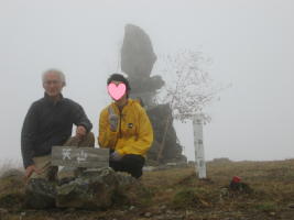 登山口と天山の登山道で豊橋からのご夫婦と挨拶を交わす。山頂部は霧に覆われて展望はなし。遮るものがなく、強風が吹き付ける。