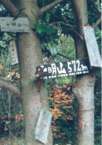 B藪漕ぎして頂上を目指し、登頂すると立派な林道があった。この林道を利用した登頂(参拝)者が多いようだ。