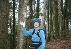 踏み跡が分からなくなり目印を付けながら登る〜何とか山頂標示のあるピークに着く。
