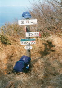 沼津アルプス縦走。自分のザックと帽子を掛けて撮影。