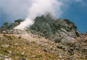 山頂付近はあちこちでガスが噴出。